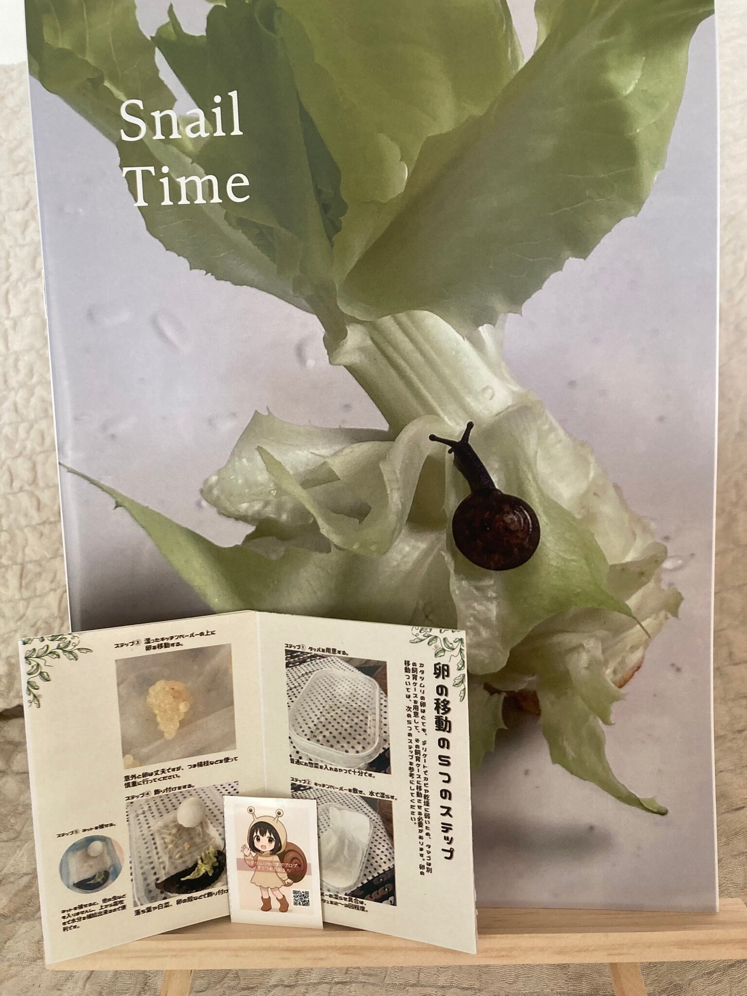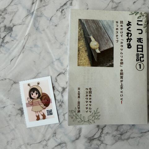 本セット限定のA7サイズ特製豆本『こつむ日記①』では、「カタツムリの卵の育て方」を丁寧に解説。