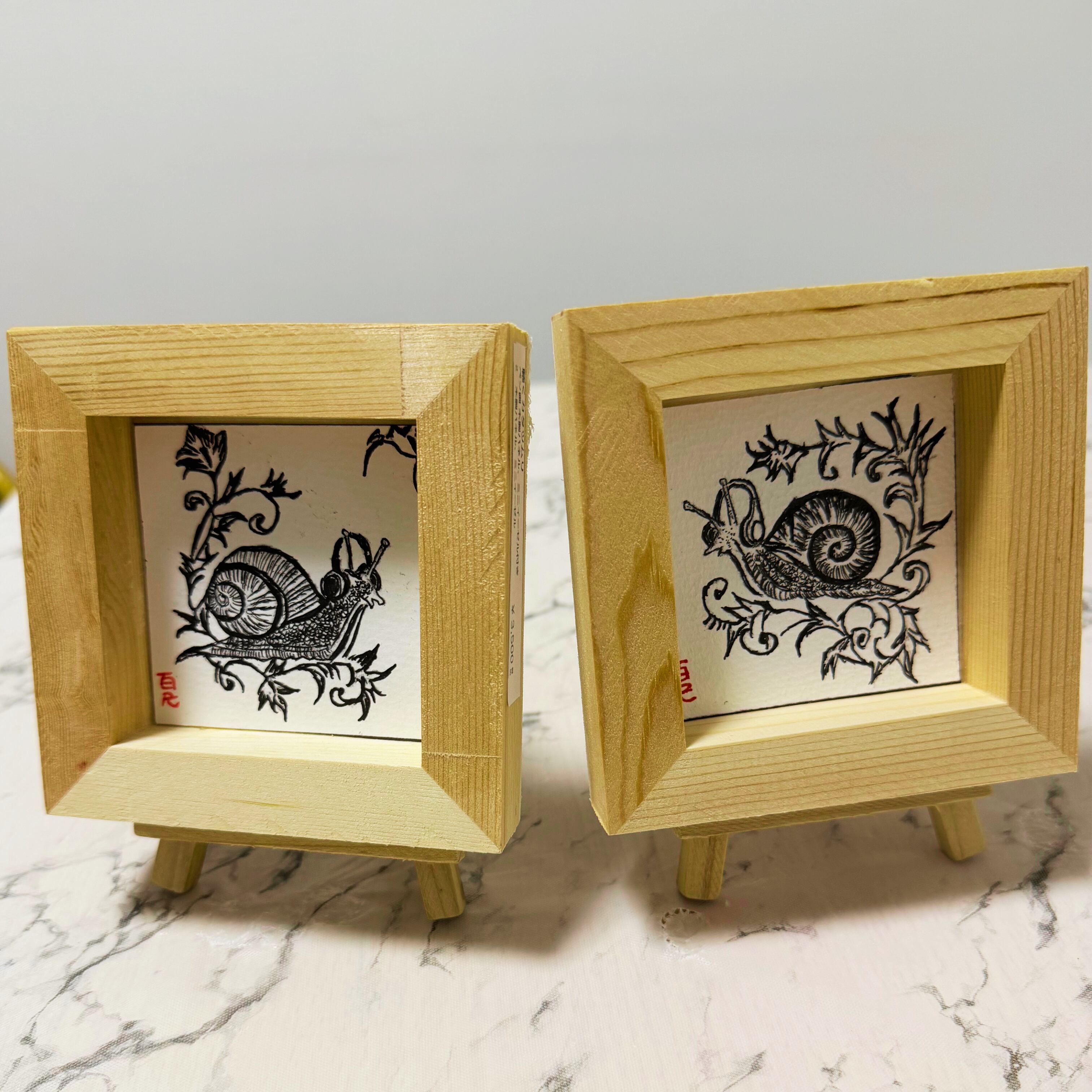 聴くカタツムリ(左右一組・木製パネル・ミニイーゼル付)