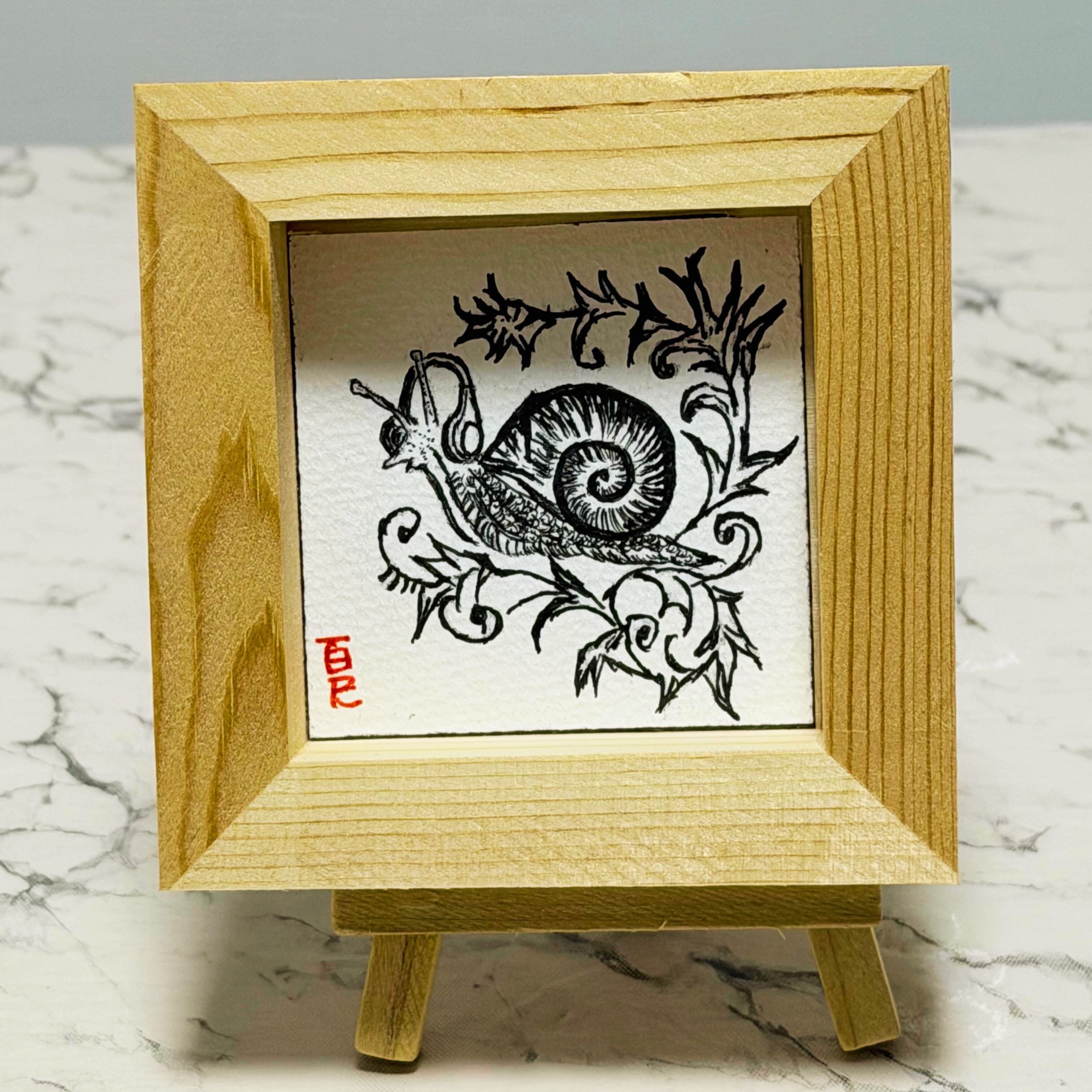 本作《聴くカタツムリ》は、そんな想像から生まれたペン画作品です。